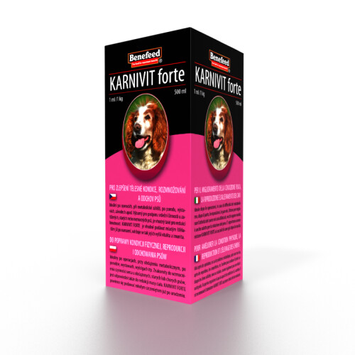 KARNIVIT FORTE zmniejsza także odkładanie tłuszczów w tkankah i pomaga przemieniać kwasy tłuszczowe na energię. Zwiększa witalność i odporność psów. Obniża poziom kwasu mlekowego w komórkach, zmniejsza degenerację mięśni i chroni błony komórkowe. Skraca konieczny czas odpoczynku po intensywnym obciążeniu (operacja, poród, wystawa, wyścig itp.), wspomaga metabolizm wątroby oraz aktywność mięśnia sercowego i mięśni poprzecznie prążkowanych.